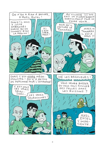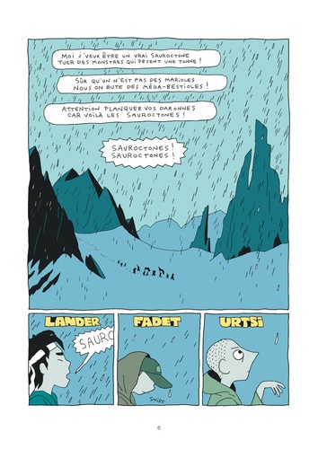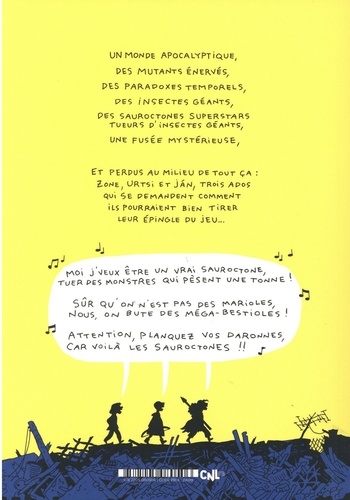 Bienvenue dans un monde post-apo ultra-violent, où les mutations physiques vont bon train et où la nature sauvage est peuplée de créatures démesurées. Des mercenaires sillonnent le territoire pour les tuer : ce sont les Sauroctones. Quand Zone, Jan et Ursti, trois adolescents vagabonds en pleine loose, apprennent l'existence d'une énigmatique fusée qui pourraient leur faire fuir définitivement ce monde hostile, ils se trouvent un but commun : la chercher ! Mais comme souvent, le voyage est semé d'embûches, et les trois héros vont cahin-caha s'improviser " Sauroctones "...