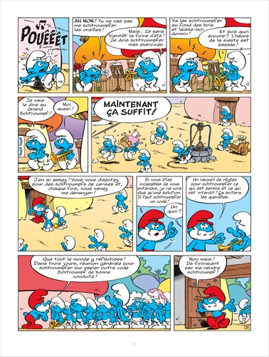 La vie des Schtroumpfs est très paisible. S'ils se querellent pour des broutilles, c'est peut-être par ennui ? Mais le Grand Schtroumpf est fatigué de devoir régler leurs conflits. Il lui vient l'idée de créer un "Code Schtroumpf" , un règlement accepté par tous. Accepté, mais pas appliqué ! Il nomme alors deux Schtroumpfs de l'ordre, chargés de noter les contraventions et de distribuer des amendes. Pauvre Grand Schtroumpf ! Il ne réalise pas que son idée va avoir des conséquences dramatiques...
