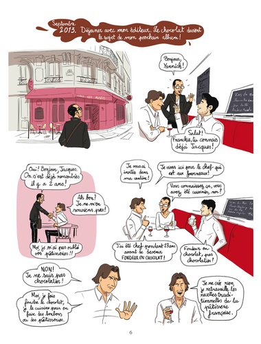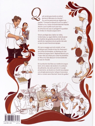 En suivant Jacques Genin pendant un an, Franckie Alarcon a côtoyé l'un des plus grands noms du chocolat. Ancien chef et pâtissier de maisons prestigieuses, cet autodidacte surdoué a partagé toute sa passion et sa connaissance du chocolat, de son processus de création à ses recettes, dans cet album gourmand qui vous fera voyager de l'atelier parisien du chef aux plantations de cacao péruviennes.