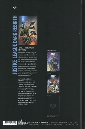 L'équilibre de la magie a été brisée en même temps que le Mur Source il y a de cela quelques mois. La nouvelle Ligue des Ténèbres dirigée par Wonder Woman tente tant bien que mal de protéger les derniers sorciers et royaumes magiques de menaces inédites. Mais le Docteur Fate, submergé par l'esprit ancien du mage Nabu, a une autre idée en tête : l'instauration d'un nouvel Ordre qui passera par l'éradication totale des derniers vestiges de l'ancienne ère magique ! Justice League Dark Rebirth présente la nouvelle série consacrée à la Ligue des Ténèbres. Ecrites par lames Tynion IV (Batman Eternal), elles poursuivent, en parallèle de la série New Justice, les pistes élaborées par l'événement Batman Metal. Le scénariste y retrouve non seulement le dessinateur de Detective Comics, Alvaro Martinez Bueno, mais aussi Daniel Sampere (Injustice Ground Zero).