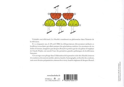 Véritable ovni télévisuel, Les Shadoks constituent un phénomène dans l'histoire de la télévision. Il y a cinquante ans, le 29 avril 1968, les téléspectateurs découvraient médusés ce feuilleton iconoclaste qui allait marquer des générations entières. Les aventures de ces drôles d'oiseaux, imaginées par Jacques Rouxel et portées par la voix pleine d'emphase de Claude Piéplu, ont suscité l'une des premières grandes polémiques de la télévision française. Cet ouvrage nous plonge dans l'élaboration de la première série des Shadoks à travers de nombreux documents inédits : photos, bandes Animographe, recherche des couleurs, mais aussi dessins préparatoires, manuscrits et story-boards originaux de Jacques Rouxel.