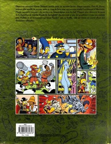 Découvrez pourquoi Homer Simpson semble avoir un nouveau boulot chaque semaine. Puis M. Burns, toujours plus assoiffé de pouvoir, tente un coup de force avec son nouveau produit fonctionnant à l'électricité. Marge reprend à nouveau "du service" en Faisant équipe avec le chef Wiggum pour découvrir la cause de la disparition de tous les donuts de Springfield ! Ajoutez à ça un peu de synesthésie à Lisa, une matinée avec McBein et un ravissement qui laisse Flanders sans sa famille, voilà qui donne un nouvel album aux dimensions colossales.