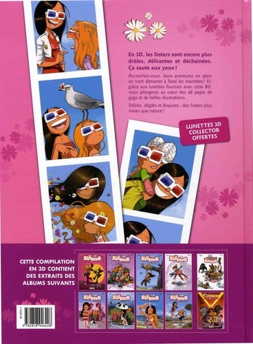 En 3D, les Sisters sont encore plus drôles, délirantes et déchaînées. Ca saute aux yeux ! Accrochez-vous, leurs aventures en plein air vont démarrer à fond les manettes ! Et, grâce aux lunettes fournies avec cette BD, vous plongerez au coeur des 48 pages de gags et de belles illustrations. Délires, dégâts et disputes : des Sisters plus vraies que nature !