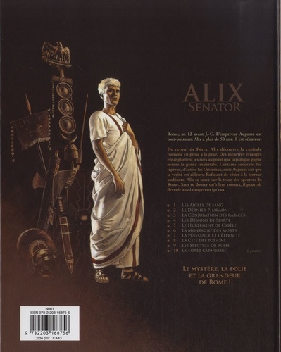 De retour de Pétra, Alix découvre la capitale romaine en proie à la peur. Des meurtres étranges ensanglantent les rues au point que la panique gagne même la garde impériale. Certains accusent les lépreux, d'autres les Orientaux, mais Auguste sait que la vérité est ailleurs. Refusant de céder à la terreur ambiante, Alix se lance sur la trace des spectres de Rome. Sans se douter qu'à leur contact, il pourrait devenir aussi dangereux.