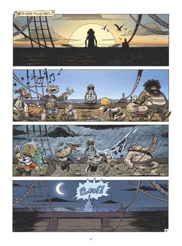 Le vieil homme et l'amer Romuald n'est plus le même depuis que le Capitaine a converti tout l'équipage à son amour des livres. En bon pirate, il ne supporte pas de voir ces piles d'ouvrages poussiéreux remplacer les montagnes d'or des cales de la Kouklamou. On peut même dire qu'il déprime sec ! Heureusement que le testament d'un vieil ami du Capitaine vient bousculer ce calme plat. Un héritage colossal attend ce dernier s'il parvient à remettre la main sur ses anciens camarades de promo : Akable le monomaniaque chasseur de baleines, Porto le globe-trotter à boucle d'oreille, Fernando l'étroit mousquetaire ou encore Isabella Bella la Bomba. Alors qu'une nouvelle aventure se prépare, le passé du capitaine refait surface... et le sourire de Romuald avec. Entre humour absurde, références loufoques et grande aventure, retrouvez le nouveau tome de Ratafia, la série pirate la plus déjantée des mers ! A l'occasion de cette nouveauté, l'ensemble de la série est réédité sous le label Vents d'ouest, chaque album bénéficiant d'un cahier graphique inédit.