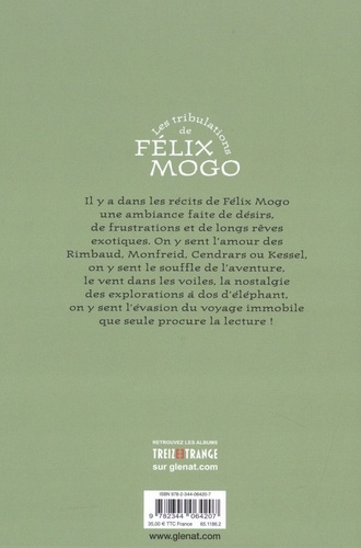 L'invitation au voyage " Je ne supporte pas ce monde trop dur, plein de femmes qui pleurent. Je veux aller sur cette île de l'autre côté de l'Afrique où tout est doux et facile. " C'est le cri du coeur de Félix Mogo, un jeune homme élégant et triste, double de papier de l'auteur, qui tombe dans tous les panneaux par amour pour les jolies femmes ! Il y a dans les récits de Christian Cailleaux une ambiance faite de désirs, de frustrations, et de longs rêves exotiques. On y sent l'amour des Rimbaud, Monfreid, Cendrars ou Kessel, on y sent le souffle de l'aventure, le vent dans les voiles, la nostalgie des explorations à dos d'éléphant, on y sent l'évasion du voyage immobile que seule procure la lecture ! Les tribulations de Félix Mogo regroupent pour la première fois quatre récits épuisés depuis bien trop longtemps : Harmattan le vent des fous, Le Café du voyageur, Le Troisième Thé et Tchaï Masala.
