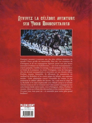 Pourquoi raconter à nouveau une des plus célèbres histoires du monde ? Parce qu'elle est immortelle, bien sûr. Les aventures de d'Artagnan et de ses compagnons figurent parmi nos plus beaux souvenirs d'enfance ou d'adolescence. Les Trois Mousquetaires, c'est le panache, l'amitié, le courage, le dévouement, toute la force et l'éclat de la jeunesse. Le jeune d'Artagnan, venu de Gascogne, rêve de devenir mousquetaire et rencontre sur son chemin Athos, Porthos, Aramis. Ensemble, ils affrontent les manoeuvres du cardinal de Richelieu et les cruels pièges de Milady, son espionne secrète... Cette adaptation couvre l'ensemble du roman, et pas seulement la célèbre affaire des ferrets. On y suit aussi le siège de La Rochelle et le duel impitoyable avec Milady jusqu'à la terrible victoire (mais en est-ce vraiment une ? ) des quatre compagnons sur cette femme fatale entre toutes. Avec d'Artagnan, Athos, Porthos et Aramis, vibrez au rythme des chevauchées et des combats épiques... Un pour tous, tous pour un - et ensemble pour notre plus grand bonheur !