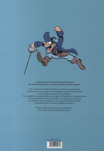 Ils sont de retour : Athos, Porthos, Aramis et surtout leur compère d'Artagnan (celui qui est parfois un peu gênant) sont toujours prêts à sortir épées et ustensiles en tous genres pour défendre l'honneur du roi et lutter contre la maléfique Milady de Winter, âme damnée du chafouin Cardinal de Richelieu. Bons mots et combats de regards sont au programme de ce nouvel album de gags parodiques qui paraît en même temps que sort en salles le second film de la saga des Trois Mousquetaires : Milady.