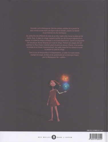 Ihorombe, Sud de Madagascar. Une des contrées oubliées de la grande île mais connue comme étant une région aride et désolée, propice à la famine et aux histoires les plus fantasques. Ary, petite fille très différente du reste de sa tribu, espère enfin trouver la place qu'elle mérite. Zava, le doyen du village, souhaite justifier son rôle de pierre angulaire de la sagesse, en aidant le village à échapper à une disette destructrice. Comme sa singularité est mal perçue, Ary est désignée pour aider le village. Pendant son voyage, elle doit subtiliser les Yeux d'Isalo, le dernier géant de pierre en errance. Chacun, à sa manière, va essayer de se trouver. Inconsciemment, leur quête respective les mènera à trouver la solution du salut du village. Dans un jeu de temporalités et d'interprétations, ce conte d'un autre monde, imprégné de magie, de féérie et de symbolismes est un message d'espoir pour ce Madagascar des "oubliés".