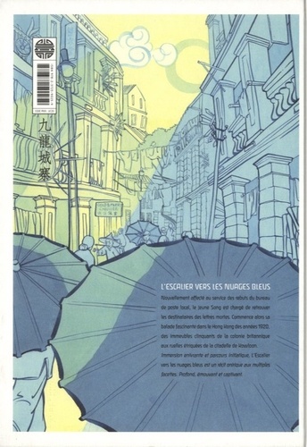 Nouvellement affecté au service des rebuts du bureau de poste local, le jeune Song est chargé de retrouver les destinataires des lettres mortes. Commence alors sa balade fascinante dans le Hong Kong des années 1920, des immeubles clinquants de la colonie britannique aux ruelles étriquées de la citadelle de Kowloon. Immersion enivrante et parcours initiatique, L'Escalier vers les nuages bleus est un récit onirique aux multiples facettes. Profond, émouvant et captivant.