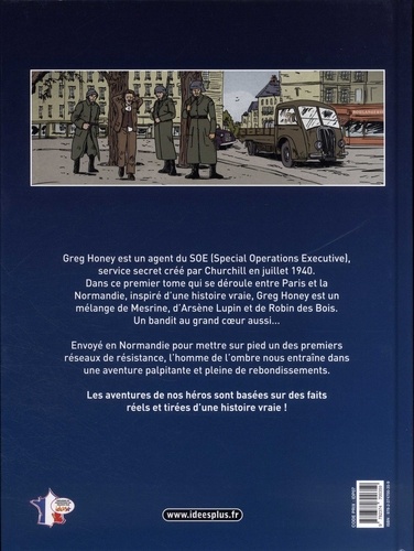 Greg Honey est un agent du SOE (Special Operations Executive), service secret créé par Churchill en juillet 1940. Dans ce premier tome qui se déroule entre Paris et la Normandie, inspiré d'une histoire vraie, Greg Honey est un mélange de Mesrine, d'Arsène Lupin et de Robin des Bois. Un bandit au grand coeur aussi... Envoyé en Normandie pour mettre sur pied un des premiers réseaux de résistance, l'homme de l'ombre nous entraîne dans une aventure palpitante et pleine de rebondissements. Les aventures de nos héros sont basées sur des faits réels et tirées d'une histoire vraie !