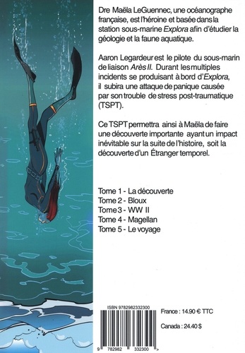 Dre Maëla LeGuennec, une océanographe française, est l'héroïne et basée dans la station sous-marine Explora afin d'étudier la géologie et la faune aquatique. Aaron Legardeur est le pilote du sous-marin de liaison Arès II. Durant les multiples incidents se produisant à bord d'Explora, il subira une attaque de panique causée par son trouble de stress post-traumatique (TSPT). Ce TSPT permettra ainsi à Maëla de faire une découverte importante ayant un impact inévitable sur la suite de l'histoire, soit la découverte d'un Etranger temporel.