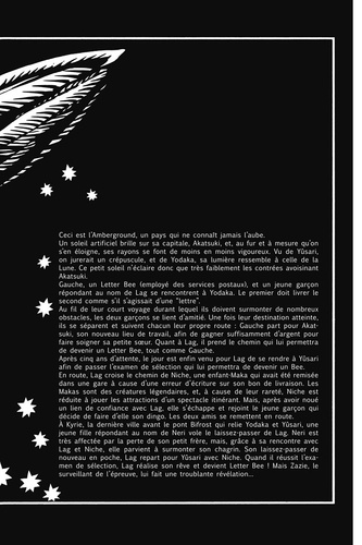Dans des territoires peuplés de monstres-insectes et plongés dans une nuit éternelle vivent et travaillent, au péril de leur vie, des agents postaux très spéciaux : les Letter Bees ! Le jeune Lag porte sur lui un bon de livraison : Lag est le premier colis que Gauche, le Letter Bee, doit livrer ! L'aventure ne fait que commencer !!