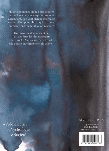 Hibari commence enfin à être écoutée par quelques personnes qui l'entourent. Cependant, que vont bien pouvoir faire ces dernières pour Hibari qui se trouve empêtrée dans cette situation nocive ? Découvrez le dénouement de l'un des titres les plus saisissants de Tomoko Yamashita, dans lequel elle pousse un véritable cri de colère !