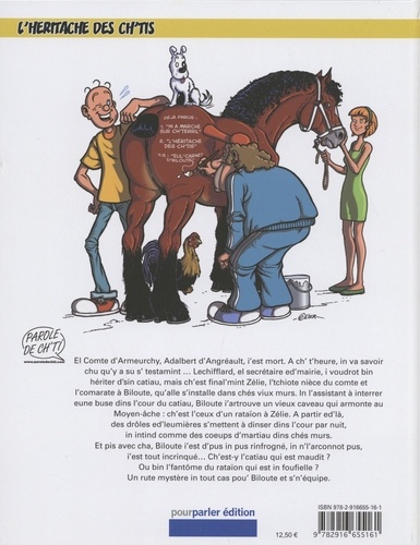 El Comte d'Armeurchy, Adalbert d'Angréault, i'est mort. A ch't'heure, in va savoir chu qu'y a su s'testamint ... Lechifflard, el secrétaire ed'mairie, i voudrot bin hériter d'sin catiau, mais ch'est final'mint Zélie, l'tchiote nièce du comte et l'comarate à Biloute, qu'alle s'installe dans chés viux murs. In l'assistant à interrer eune buse dins l'cour du catiau, Biloute i'artrouve un vieux caveau qui armonte au Moyen-âche : ch'est l'ceux d'un rataïon à Zélie. A partir ed'là, des drôles ed'leumières s'mettent à dinser dins l'cour par nuit, in intind comme des coeups d'martiau dins chés murs. Et pis avec cha, Biloute i'est d'pus in pus rinfrogné, in n'l'arconnot pus, i est tout incrinqué... Chest-y l'catiau qui est maudit ? Ou bin l'fantôme du rataïon qui est in foufielle ? Un rute mystère in tout cas pou' Biloute et s'n'équipe.