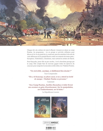 Chaque été, des enfants de toute la Russie viennent en séjour au camp Poutine. Au programme : vie en groupe et activités militaires pour découvrir la vie au grand air et,avant tout, pour les entraîner à devenir de vrais défenseurs de la grande Russie contre ses ennemis de toutes parts : Européens, Tchétchénes, Ukrainiens, mais surtout les armées de Daesh. Pour Katyusha, jeune fille un peu secrète, c'est le deuxième passage par le camp. Elle compte bien de nouveau gagner toutes les épreuves du concours pour remporter la rencontre en tête à tête avec Vladimir Poutine.