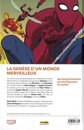Nous sommes à la fin des temps, toute vie a disparu. Seuls survivants, Franklin Richards et Galactus se remémorent l'histoire de l'univers Marvel. Découvrez un récit inédit qui reprend tous les événements importants et toutes les sagas cultes. Une belle leçon d'histoire et une vision inédite de l'univers le plus emblématique de l'industrie des comics. Panini Comics propose tout au long de l'année plusieurs albums célébrant les 80 ans de la Maison des Idées. History of the Marvel Universe est l'équivalent de la Bible pour l'univers Marvel ! Cet album, qui sera le livre de chevet des fans, permettra aux néophytes de s'approprier la richissime histoire du plus célèbre éditeur de comics.