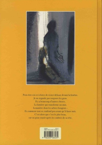 Peut-être est-ce à force de rester debout devant la fenêtre. Je ne regarde pas toujours les gens. Il y a beaucoup d'autres choses. La lumière qui transforme un mur, la manière dont les arbres bougent... Et comment tout se confond peu avant qu'il fasse nuit. C'est alors que c'est le plus beau, car on peut courir après les ombres de sa tête.