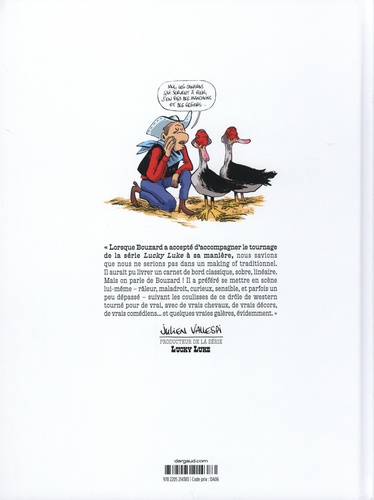 Avez-vous déjà rêvé d'assister au tournage d'une série télé ? Guillaume Bouzard, lui, l'a fait ! Et c'est Julien Vallespi, le producteur de la série, qui en parle le mieux : "Lorsque Bouzard a accepté d'accompagner le tournage de la série Lucky Luke à sa manière, nous savions que nous ne serions pas dans un making of traditionnel. Il aurait pu livrer un carnet de bord classique, sobre, linéaire. Mais on parle de Bouzard ! Il a préféré se mettre en scène lui-même ? râleur, maladroit, curieux, sensible, et parfois un peu dépassé ? suivant les coulisses de ce drôle de western tourné pour de vrai, avec de vrais chevaux, de vrais décors, de vrais comédiens... et quelques vraies galères, évidemment". mais aussi des croquis glanés pendant ce tournage. Un album drôle et instructif !