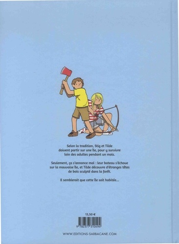 Le moment est venu : comme leurs parents et grands-parents avant eux, Stig et Tilde doivent partir sur une île déserte pour y survivre par eux-mêmes pendant un mois. Sauf que ça s'annonce mal : leur bateau s'échoue sur la mauvaise île, et Tilde découvre d'étranges têtes de bois sculpté dans la forêt. Il semblerait que cette île soit habitée...