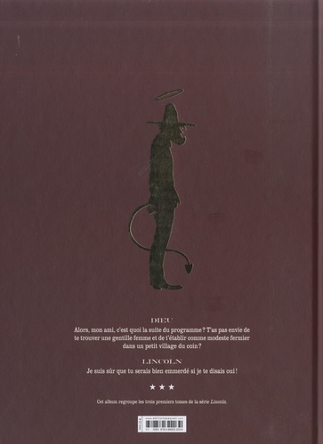 Dieu Alors, mon ami, c'est quoi la suite du programme ? T'as pas envie de te trouver une gentille femme et de t'établir comme modeste fermier dans un petit village du coin ? Lincoln Je suis sûr que tu serais bien emmerdé si je te disais oui !
