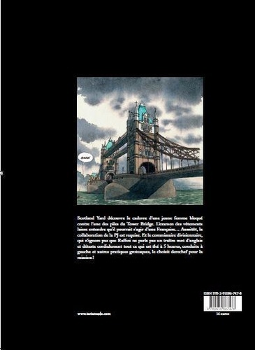 Avec ce nouvel album, L'Inconnue de Tower Bridge , le commissaire Raffini fait sa première incursion hors de l'hexagone. Scotland Yard vient en effet de récupérer le cadavre d'une jeune femme bloquée contre les piles du Tower Bridge. L'examen des vêtements laisse entendre qu'il pourrait s'agir d'une Française. Aussi, la collaboration de la police française est-elle souhaitée. Le commissaire divisionnaire, qui sait que Raffini ne parle pas un traître mot de la langue de Shakespeare et déteste cordialement tout ce qui est thé à 5 heures, conduite à gauche et autres comportements et pratiques grotesques, le choisit aussitôt pour la mission. Ainsi démarre cette enquête qu'en son for intérieur Raffini a rebaptisé Raffini chez ces Foutus Rosbeefs ! Une histoire - on l'aura compris - non dénuée d'humour, mais qui conjugue aussi action, émotion et suspense.