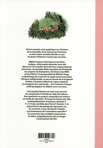 Une histoire mondiale de la sexualité. Nouvelle édition intégrale et augmentée. Voici le premier récit graphique sur l'histoire de la sexualité. Avec beaucoup d'humour, ce best-seller mondial dévoile ce que les livres d'histoire n'osent pas raconter. Mêlant rigueur historique et narration ludique, cette bande dessinée nous fait découvrir l'incroyable diversité des comportements amoureux : les grandes fêtes sexuelles de l'Antiquité, les origines du Kamasutra, l'érotisme des Mille et Une Nuits, l'homosexualité de Michel-Ange, le libertinage de Louis XV, la magie amoureuse dans l'Afrique traditionnelle, le secret sexuel de la longévité taoïste, l'érotisme délicat du Japon impérial, la misogynie des samouraïs... Une immense fresque anthropologique se déploie sous nos yeux. L'Incroyable Histoire du sexe nous permet de comprendre l'intimité au-delà des tabous. Des questions se posent, auxquelles les auteurs ont tenté de répondre : Pourquoi la femme est-elle, systématiquement et partout, dominée ? Y a-t-il des sociétés plus libres ? Assiste-t-on aujourd'hui à davantage de répression ou, au contraire, à plus de liberté ? Quelle reconnaissance de l'orientation sexuelle ? Ce panorama des multiples expressions du désir, magnifiquement mis en image, n'avait jamais été fait.