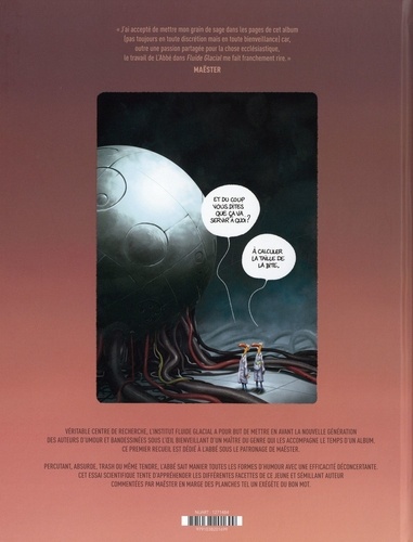 Véritable centre de recherche, l'Institut Fluide Glacial a pour eut de mettre en avant la nouvelle génération des auteurs d'umour et bandessinées sous l'oeil bienveillant d'un maître du genre qui les accompagne le temps d'un album. Ce premier recueil est dédié à L'Abbé sous le patronage de Maëster. Percutant, absurde, trash ou même tendre, L'Abbé sait manier toutes les formes d'humour avec une efficacité déconcertante. Cet essai scientifique tente d'appréhender les différentes facettes de ce jeune et sémillant auteur commentées par Maëster en marge des planches tel un exégète du bon mot.