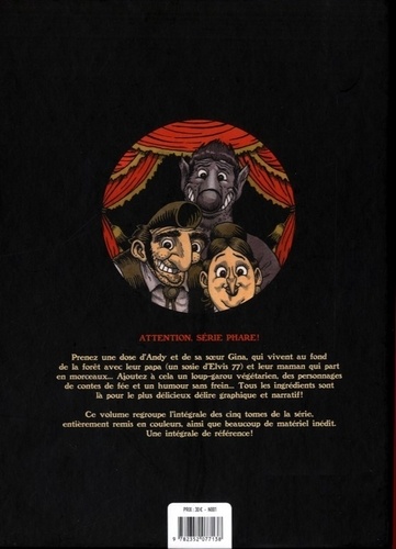 Prenez une dose d'Andy et de sa sueur Gina, qui vivent au fond de la forêt avec leur papa (un sosie d'Elvis 77) et leur maman qui part en morceaux... Ajoutez à cela un loup-garou végétarien, des personnages de contes de fée et un humour sans frein... Tous les ingrédients sont là pour le plus délicieux délire graphique et narratif ! Ce volume regroupe l'intégrale des cinq tomes de la série, entièrement remis en couleurs, ainsi que beaucoup de matériel inédit. Une intégrale de référence !