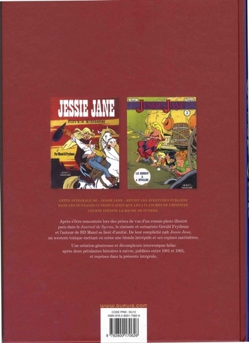 Depuis toute petite, Jessie Jane s'efforce de convenir à l'existence rangée de future épouse que ses parents, humbles propriétaires dans le grand Ouest américain, lui promettent. Mais la timide jeune fille, dont la beauté attire tous les hommes (et donc beaucoup d'ennuis), rêve d'aventures et de voyages, de bagarres endiablées et de longues chevauchées à travers la plaine. Cette héroïne de Frydman, à laquelle Mazel offrit une formidable vitalité, est sans aucun doute la digne petite soeur de Lucky Luke : pétillante, ingénieuse et, pour ne rien gâcher, tireuse hors pair. Cette intégrale réunit ses deux albums, "Flirt à la Winchester" et "Le shérif à 4 étoiles", prépubliés dans le Journal Spirou en 1981 et 1983, ainsi que le court récit "La hache de guerre" publié dans le numéro "Spécial 81-82" de l'hebdomadaire, enrichis d'un dossier thématique sur les deux auteurs et sur leur univers à la fois original et parodique. Une occasion parfaite de découvrir ou redécouvrir le travail de Frydman et Mazel, grâce à ces histoires pleines de drôlerie, d'énergie et de clins d'oeil savoureux aux westerns. En selle !