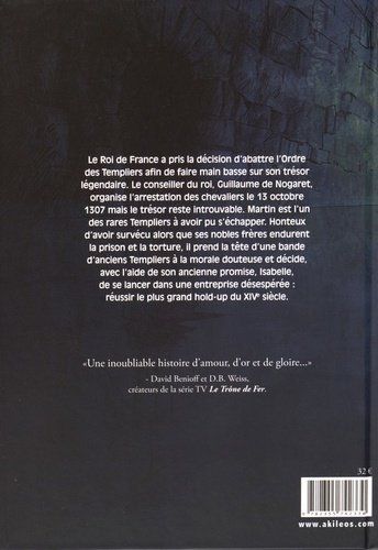 Le Roi de France a pris la décision d'abattre l'Ordre des Templiers afin de faire main basse sur son trésor légendaire. Le conseiller du roi, Guillaume de Nogaret, organise l'arrestation des chevaliers le 13 octobre 1307 mais le trésor reste introuvable. Martin est l'un des rares Templiers à avoir pu s'échapper. Honteux d'avoir survécu alors que ses nobles frères endurent la prison et la torture, il prend la tête d'une bande d'anciens Templiers à la morale douteuse et décide, avec l'aide de son ancienne promise, Isabelle, de se lancer dans une entreprise désespérée : réussir le plus grand hold-up du XIVe siècle.