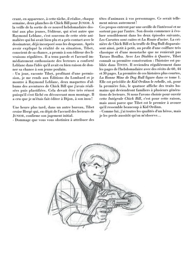 En 1953, Raymond Leblanc, le fondateur du Lombard, veut introduire une série animalière dans le journal "Tintin". Hergé s'y oppose, mais Tibet saisit l'occasion pour lancer un jeune garçon à la crinière fauve de lionceau dans une chevauchée à travers l'Arizona. Quelques mois après son galop d'essai, ce brave cow-boy appelé Chick Bill prend figure humaine, tout comme ses amis Dog Bull, Kid Ordinn et Petit-Caniche ! Wood-City, paisible cité du Far-West, devient dès lors le cadre d'un des plus fameux westerns humoristiques de la BD. Ce recueil reprend : "Kid Ordinn, le Rebelle", "L'Etrange Monsieur Casy-Moto", "La bonne Mine de Dog Bull".