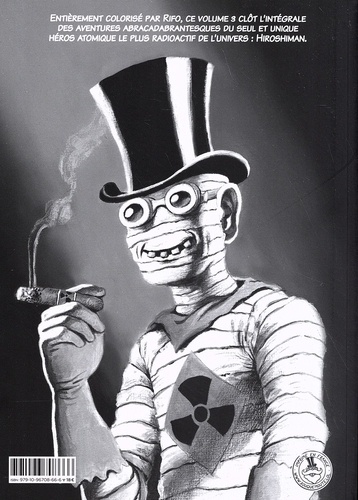 L'intégrale d'Hiroshiman s'enrichit d'un troisième et ultime volume qui sublime les aventures du seul et unique héros atomique le plus radioactif de l'univers : HIROSHIMAN. Via un synopsis absurde et efficace, Hiroshiman annonce un futur apocalyptique et joue d'une science-fiction d'anticipation complètement barrée à lire au troisième degré. Au fil des planches, ce super-héros, plutôt flegmatique, fait face aux menaces qui pèsent sur Mégalopolis. Dans ce gigantesque labyrinthe urbain surpeuplé, il combat à coups de rayons gamma des monstres et des mutants sur fond d'humour parfois crade. Ce volume 3 contient 132 pages bourrées d'hommages cinématographiques et de clins d'oeil BD.