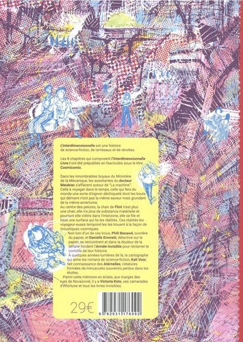 L'Interdimensionnelle est une histoire de science-fiction, de lambeaux et de révoltes. Chaque chapitre est un fragment avec une approche graphique et narrative particulière. Le récit trace le parcours de voyageur·ses temporel·les, mais s'attache surtout à raconter les histoires des personnes qui subissent les conséquences des expérimentations temporelles. Les 8 chapitres qui composent L'Interdimensionnelle Livre I ont été prépubliés en fascicules sous le titre Cosmicomix.