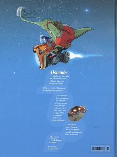 Hercule et Marion sont arrivés en deuxième année à l'école d'agents intergalactiques. Et ils ont encore beaucoup de choses d apprendre ! Mais lorsque leur professeur est victime d'une morsure d'un étrange extraterrestre, il ne s'agit plus uniquement d'appliquer la théorie... Il faut agir vite ! Car la folie qui empare de l'enseignant semble se propager dans leur école...