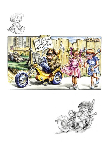 Grâce à cette intégrale de la série culte de Coyote, découvrez ou redécouvrez Litteul Kévin le plus célèbre des mini-motards, le plus espiègle et attachant des gamins bikers. Venez jouer avec lui dans la cour des grands ! Litteul Kévin voit le jour dans les pages du magazine Fluide Glacial en 1993. La série rencontre un succès immédiat, qui ne se démentira pas. En quelques années, Coyote a su installer son héros dans un univers bien à lui, où la morale familiale traditionnelle tutoie le monde des bikers tatoués jusqu'aux oreilles. Avec un superbe dessin très efficace, il sait nous plonger dans ce monde de bonne humeur et de répartie savoureuse et complice entre le petit Kévin et ses parents, toujours aussi attachants (surtout sa mère ! ). Cette intégrale de 360 pages rassemble tous les albums de Litteul Kévin parus chez Fluide Glacial, dans leur version originale en noir et blanc. En fin d'ouvrage, retrouvez un cahier graphique inédit !