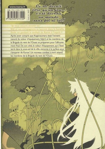 "Je veux revenir ici", Sôji et ses compagnons se lancent dans la bataille finale en gardant le souhait de Kuroe à l'esprit ! ! Après avoir compris que Kogarasumaru était l'ennemi naturel du voleur d'équipement, Sôjiro et les membres de la Brigade du vent de l'Ouest se préparent pour l'affrontement final. De son cité, le voleur d'équipement, qui s'était terré dans le sous-sol de la ville, remonte à la surface pour s'emparer de Kuroe ! Un nouveau combat à mort attend les membres de la Brigade du vent de l'Ouest...