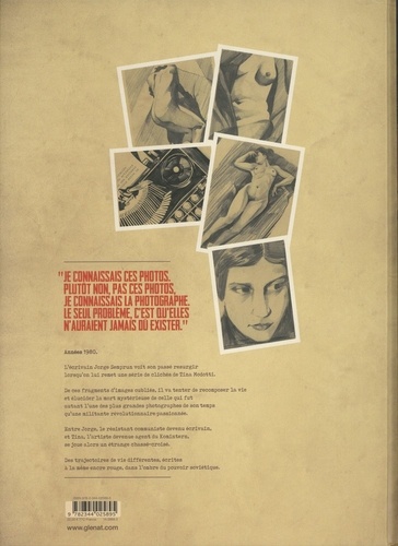 Le récit d'une vie, d'un sacrifice pour la cause. Londres, 1982. Jorge Semprun, ancien militant communiste, romancier et scénariste à succès reçoit une énigmatique invitation à la Tate Gallery. Un musée, lieu de rendez-vous idéal pour les espions et les agents clandestins. Ici, un homme mystérieux lui remet une enveloppe contenant une douzaine de clichés. Des clichés que Jorge connait bien... Ou plutôt, leur auteur : Tina Modotti. Photographe et artiste italienne immigrée aux Etats-Unis dans les années 1920 puis militante révolutionnaire et agent du Komintern au Mexique, elle est probablement liée à l'assassinat de Trotsky et à la guerre civile espagnole de 1936. Le 6 janvier 1942, revenue en Amérique, elle décède d'une crise cardiaque. Mais qui était-elle vraiment et quelles sont les véritables raisons de sa mort ? C'est pour élucider ces mystères que, 40 ans plus tard, Jorge va mener l'enquête... Dans ce passionnant roman graphique au souffle historique mais surtout romanesque, Jean-Pierre Pécau nous raconte l'incroyable destin d'une artiste qui a tout sacrifié pour la Révolution et tente, derrière le fantasme de sa disparition, de livrer sa version des faits. Une histoire de femme et d'espionnage, dessinée par un jeune talent issu de l'école espagnole : Alejandro Gonzalez.