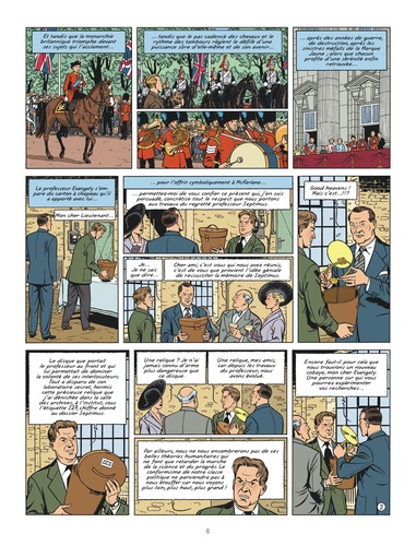 Mortimer ne parvient pas à percer le mystère de l'onde Mega et le fonctionnement du Télécéphaloscope de Septimus lui échappe. Qu'est-ce qui peut bien provoquer toutes ces interférences ? Cela pourrait-il avoir un lien avec cet inconnu en chapeau melon qui arpente les rues de Londres en demandant après Guinea Pig ? Jean Dufaux et Antoine Aubin, aidés d'Etienne Schréder, revisitent La Marque Jaune. Ils prolongent le mythe et signent le grand retour d'Olrik sur les quais de la Tamise.