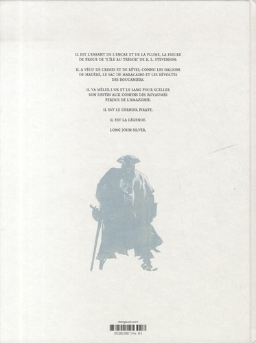Il est l'enfant de l'encre et de la plume, la figure de proue de "L'île au trésor" de R.L. Stevenson. Il a vécu de crimes et de rêves, connu les galions de Madère, le sac de Maracaibo et les révoltes de boucaniers. Il va mêler l'or et le sang pour sceller son destin aux confins des royaumes perdus de l'Amazonie. Il est le dernier pirate. Il est la légende. Long John Silver.