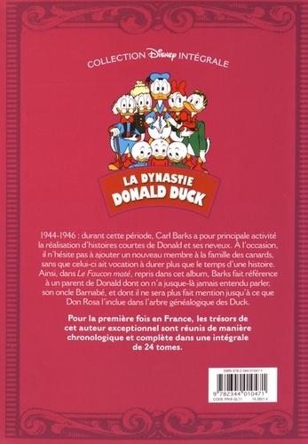 Redécouvrez les oeuvres de jeunesse du maître ! Retrouvez l'intégralité de l'oeuvre de Carl Barks, l'auteur le plus réputé et le plus talentueux des aventures de Donald. Aventure, mystère et magie sont bien sûr au rendez-vous de ces histoires, mais aussi humour, amitié et cacophonie familiale ! En introduction, chaque volume propose un appareil critique de l'oeuvre de l'auteur, et chaque histoire est précédée d'une courte fiche d'identité bibliographique permettant de la replacer dans le contexte de sa première publication. Cette intégrale, prévue en 24 volumes, est idéale pour les admirateurs de Carl Barks et les collectionneurs bibliophiles, vendue à plus de 200 000 exemplaires et dont le tome 4 a eu l'honneur de recevoir le Fauve Patrimoine lors du Festival d'Angoulême 2012. Depuis le tome 19, La Dynastie Donald Duck reprend chronologiquement, de ses débuts, l'oeuvre de Carl Barks.