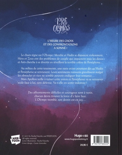 L'HEURE DES CHOIX ET DES CONFRONTATIONS A SONNE ! L'Olympe est officiellement en train de perdre pied : Menthé est violente envers Hadès, Héra et Zeus ont des problèmes de couple qui impactent tous les dieux et Arès débarque et ne trouve rien de mieux à faire que d'aller réveiller la colère de Perséphone... Au milieu de ce chaos, Hadès et Perséphone réussissent tout de même à se retrouver pour faire le point sur leur relation. Vont-ils enfin s'avouer leurs sentiments ? Apollon de son côté harcèle Perséphone et arrive enfin à se retrouver seul à seul avec elle : un affrontement difficile va se jouer. Perséphone va-t-elle en sortir indemne ? Ce quatrième volume met l'accent sur les confrontations nécessaires et délicates qui régissent les relations et permet de nous montrer que les bons choix sont souvent les plus difficiles à faire. Hadès et Perséphone sauront-ils trouver leur voie ? L'interprétation ingénieuse de ce conte intemporel est devenue un classique moderne !