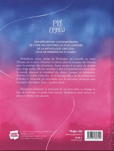 Perséphone, jeune déesse du Printemps, est nouvelle au mont Olympe car sa mère, Déméter, l'a élevée dans le royaume des Mortels pour la protéger des tentations. Ayant promis à sa mère de devenir une vierge sacrée, elle est autorisée à aller à l'université et à vivre dans le monde glamour et trépidant des dieux. Lorsque sa colocataire, Artémis, l'emmène à une fête, sa vie bascule : elle y fait la connaissance d'Hadès et l'étincelle est immédiate avec le souverain charmant mais incompris des Enfers. Tout s'accélère alors... Découvrez comment la rencontre de ces deux êtres va changer la face de l'Olympe, et quelle lutte mènera Perséphone pour trouver sa place et affirmer son pouvoir.