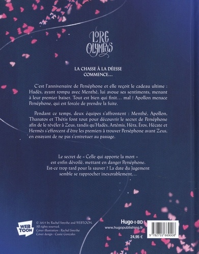 La suite de la réécriture contemporaine à succès de l'histoire la plus connue de la mythologie grecque : l'enlèvement de Perséphone par Hadès ! C'est l'anniversaire de Perséphone et elle reçoit le cadeau ultime : Hadès lui avoue ses sentiments, menant à leur premier baiser. Mais cela ne facilite pas nécessairement les choses pour la déesse du printemps, car Apollon la force à fuir, ne comptant pas la laisser être heureuse avec Hadès... Et il n'est pas le seul. Menthé veut se venger de sa rupture avec Hadès et fait équipe avec Thanatos et Thétis pour trouver et dévoiler le secret de Perséphone, "celle qui apporte la mort" , à Zeus. Hadès, Artémis, Héra, Eros et Hermès forment à leur tour une autre bande, improbable, pour partir à la recherche de Perséphone et lui éviter d'être jugée. Est-ce trop tard pour la sauver ?