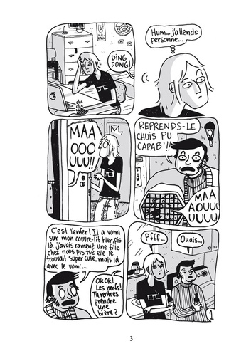 Énorme chat pépère, Legolas traîne dans les pattes de Jean-Sébastien et Jasmin qui se partagent la garde de l’animal. L’un est un dragueur invétéré, depuis peu au chômage ; l’autre souhaite faire carrière dans la musique mais vient de se faire virer de son groupe. Potes depuis l’enfance, ils ont l’habitude de se « piquer leurs blondes » comme ils disent là-bas, au Québec. Et arrive Julie…