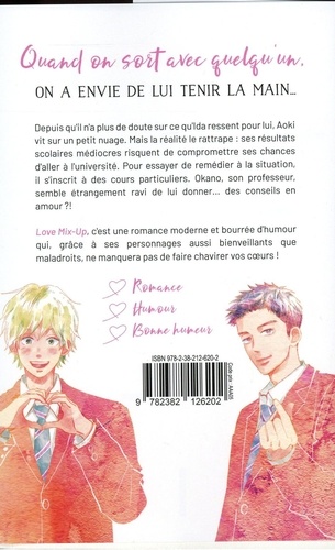 Love Mix-Up, c'est une romance moderne et bourrée d'humour qui, grâce à ses personnages aussi bienveillants que maladroits, ne manquera pas de faire chavirer vos coeurs ! Depuis qu'il n'a plus de doute sur ce qu'Ida ressent pour lui, Aoki vit sur un petit nuage. Mais la réalité le rattrape : ses résultats scolaires médiocres risquent de compromettre ses chances d'aller à l'université. Pour essayer de remédier à la situation, il s'inscrit à des cours particuliers. Okano, son professeur, semble étrangement ravi de lui donner... des conseils en amour ? !