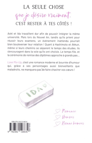 Aoki et Ida travaillent dur afin de pouvoir intégrer la même université. Mais lors du Nouvel An, tandis qu'ils prient pour réussir leurs examens, un événement inattendu pourrait bien bouleverser leur relation ! Quant à Hashimoto et Akkun, même si leurs chemins se séparent le temps des études, ils s'encouragent dans la voie qu'ils ont choisie. Le temps file, et la cérémonie de remise des diplômes approche à grands pas... Love Mix-Up, c'est une romance moderne et bourrée d'humour qui, grâce à ses personnages aussi bienveillants que maladroits, ne manquera pas de faire chavirer vos coeurs !
