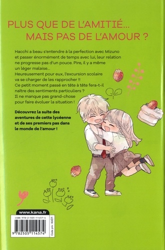 Plus que de l'amitié... mais pas de l'amour ? Hacchi a beau s'entendre à la perfection avec Mizuno et passer énormément de temps avec lui, leur relation ne progresse pas d'un pouce. Pire, il y a même un léger malaise... Heureusement pour eux, l'excursion scolaire va se charger de les rapprocher !! Ce petit moment passé en tête à tête fera-t-il naître des sentiments particuliers ? Il ne manque pas grand-chose pour faire évoluer la situation ! Découvrez La suite des aventures de cette Lycéenne et de ses premiers pas dans le monde de l'amour !