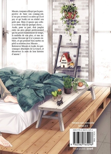 Masato, toujours effrayé par la perspective de faire son coming-out, n'ose pas avouer à sa mère qu'il est gay et qu'Asahi est en réalité son petit ami. Mais il ignore que celle-ci se doute déjà de quelque chose... Asahi, pour sa part, doit jongler entre un gros projet professionnel qui lui prend énormément de temps, la maladie de son père, et une ancienne blessure qu'il n'a jamais oubliée, et qui pourrait bien mettre en péril sa relation avec Masato... Retrouvez Masato et Asahi, les personnages attachants de Lovenest, et découvrez la suite de leur histoire d'amour !
