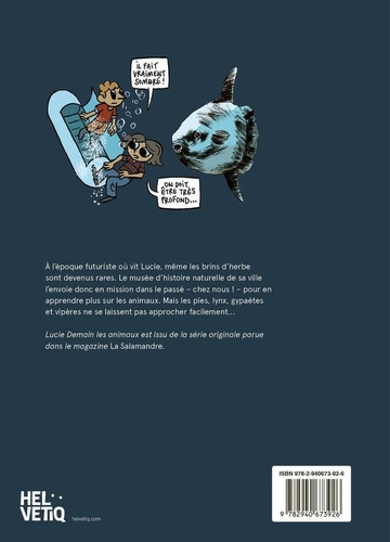 A l'époque futuriste où vit Lucie, même les brins d'herbe sont devenus rares. Le musée d'histoire naturelle de sa ville l'envoie donc en mission dans le passé - chez nous ! - pour en apprendre plus sur les animaux. Mais les pies, lynx, gypaètes et vipères ne se laissent pas approcher facilement... Lucie Demain les animaux est issu de la série originale parue dans le magazine La Salamandre.